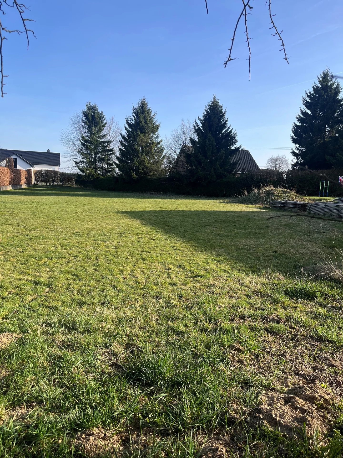 Le terrain est plat et orienté plein sud, offrant de bonnes conditions pour la construction d’une maison unifamiliale. Il n’y a aucune obligation de construire, ce qui vous permet de planifier et de réaliser votre projet en toute flexibilité.